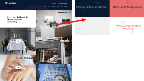 Nedenfor ses et godt eksempel herpå, hvor det digitale bureau, Obsidian, har valgt at oprettet en separat underside dedikeret til deres bedste kundecases og gode resultater.