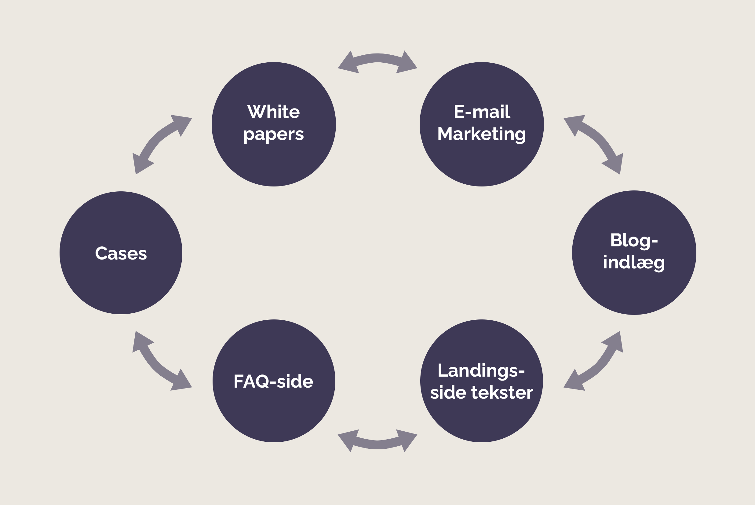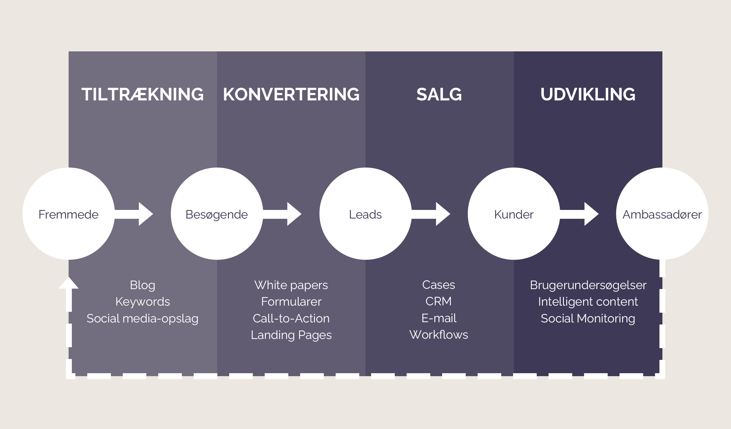 På den måde kan du ideelt set eksponere de potentielle (og eksisterende) kunder med dine salgsbudskaber flere gange – og dermed skabe værdi i flere led af inbound marketing-processen.