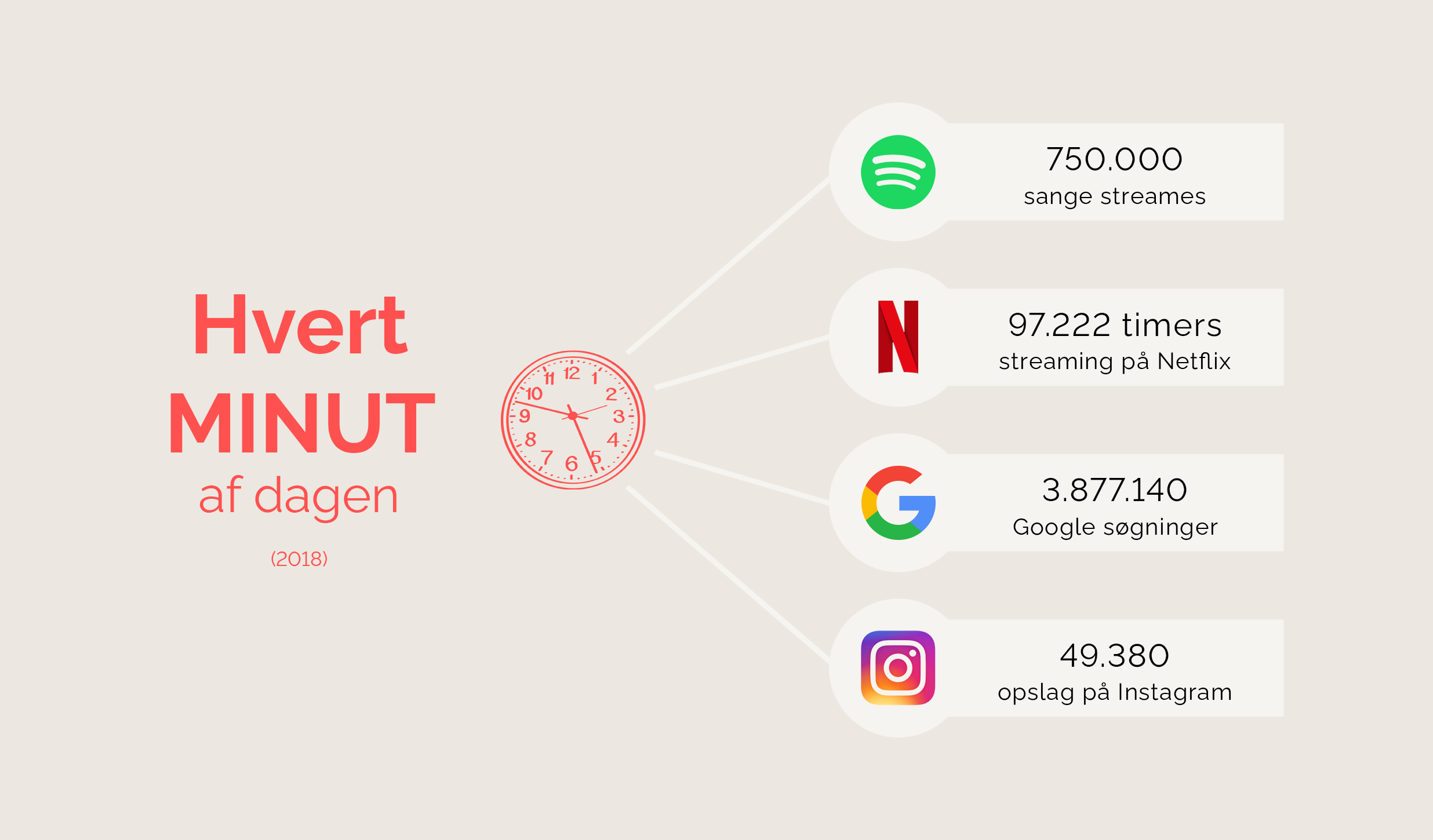 Samme undersøgelse fra 2018 viste, at der i 2020 gennemsnitligt vil blive skabt 1,7 MB data pr. person hvert eneste sekund. Det er bl.a. en af grundene til, at mange i dag taler om, hvorvidt det stadig er vigtigt at skabe unikt indhold til sine onlinemedier. For det er der uden tvivl rigtig meget af allerede.