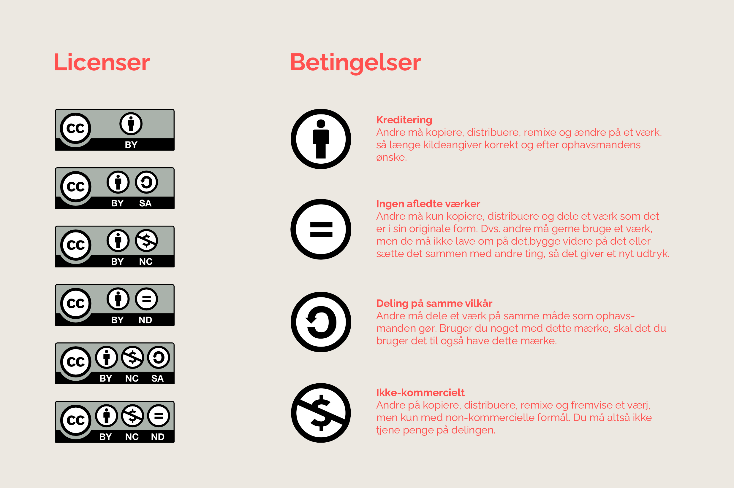Er du i tvivl om, hvad en Creative Commons-licens indebærer, kan du tjekke det på Creative Commons’ danske hjemmeside.