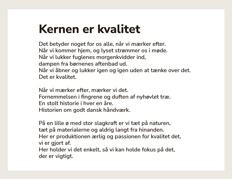 Jeg ved godt, at det der med kernefortællinger kan virke lidt abstrakt og fluffy. Derfor vil jeg gerne komme med et eksempel på en kernefortællingscase, vi havde her i Texta i 2023 for virksomheden STM Vinduer.