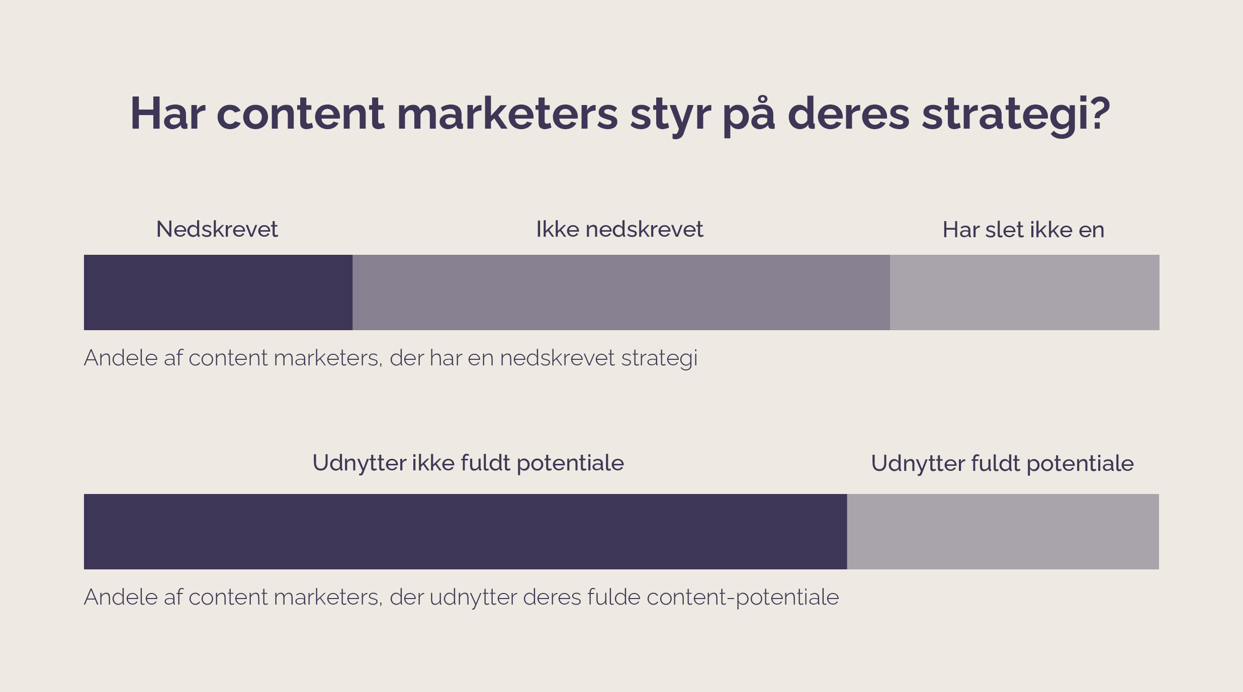 Går vi lidt hårdere til tallene, kan vi til en vis grad konkludere, at 71 % faktisk ikke udnytter deres fulde content-potentiale. Så er der de 50 %, som har en content plan, der bare ikke er skrevet ned. Ja … Det svarer vel lidt til at have et kort til et fitnesscenter, som aldrig rigtigt bliver brugt.