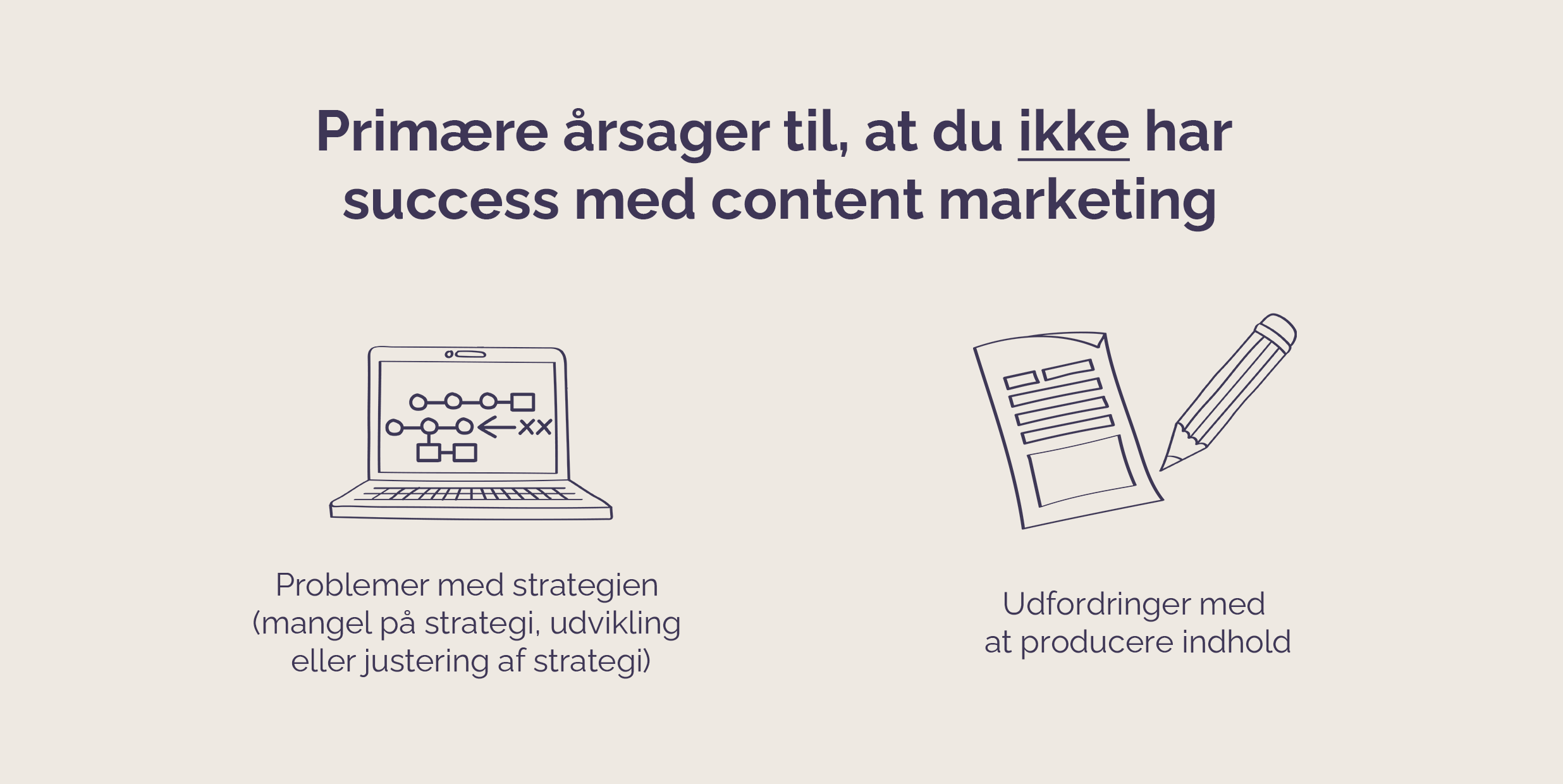 Ifølge Brandmovers Content Marketing-analyse fra 2017, hvor de blandt andet undersøgte årsagen til manglende succes, fandt 50 % af de adspurgte content marketers både ”problemer med strategien (mangel på strategi, udvikling eller justering af strategi)” og ”Udfordringer med at producere indhold” som værende primære årsager til, de ikke opnåede succes med deres content marketing-strategi.