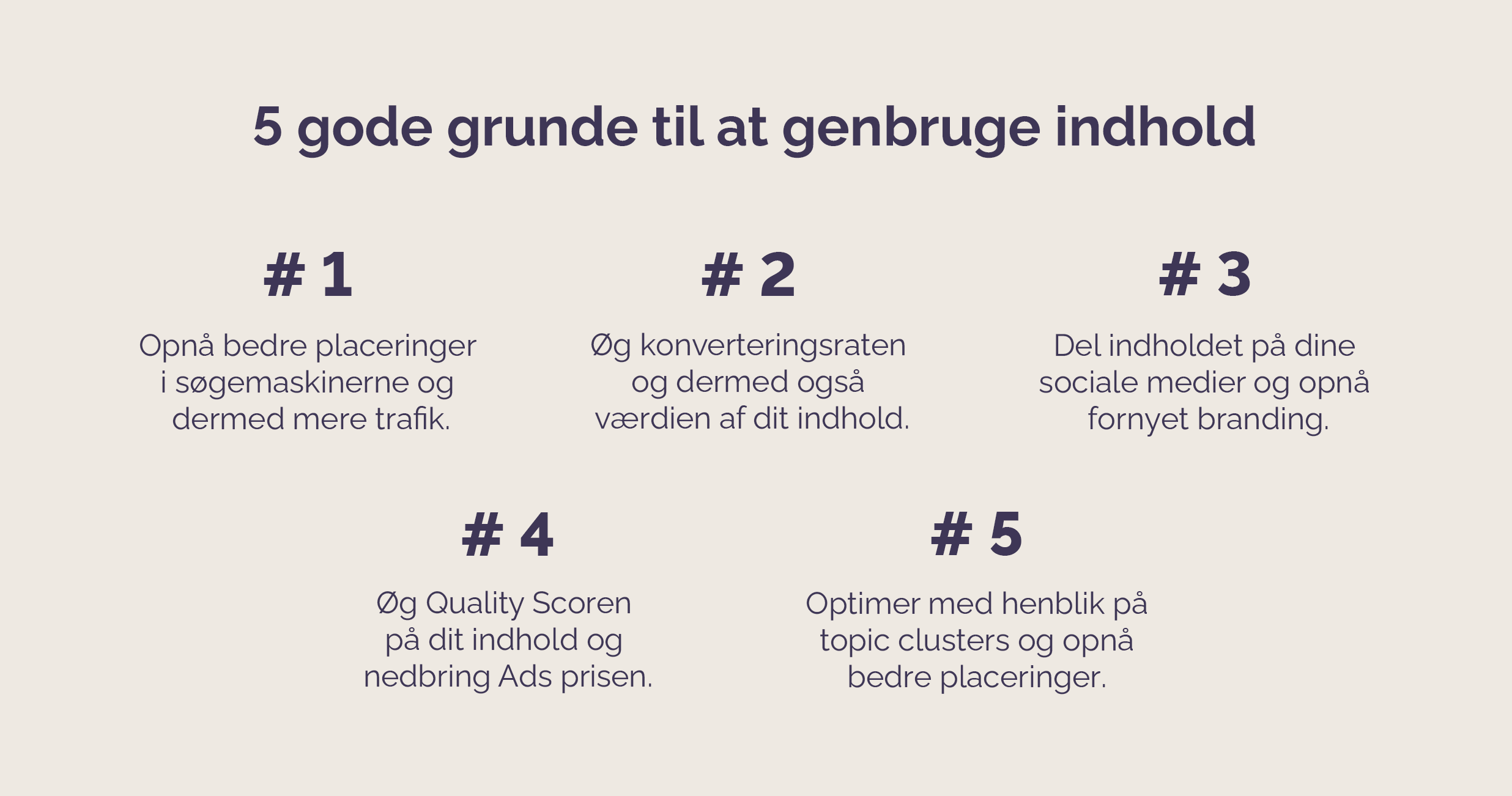 Endnu ikke overbevist? Så læs med videre, hvor jeg giver dig fem grunde til, hvorfor det er en verdensklasse idé at optimere på gammelt indhold.