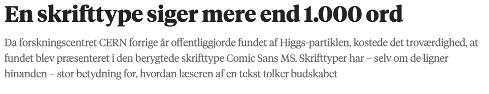 Særligt de to første, white space og skrifttype, spiller vigtige roller i tekstaterstykket. Faktisk er der hele psykologier omkring det. Se bare denne overskrift fra Information: