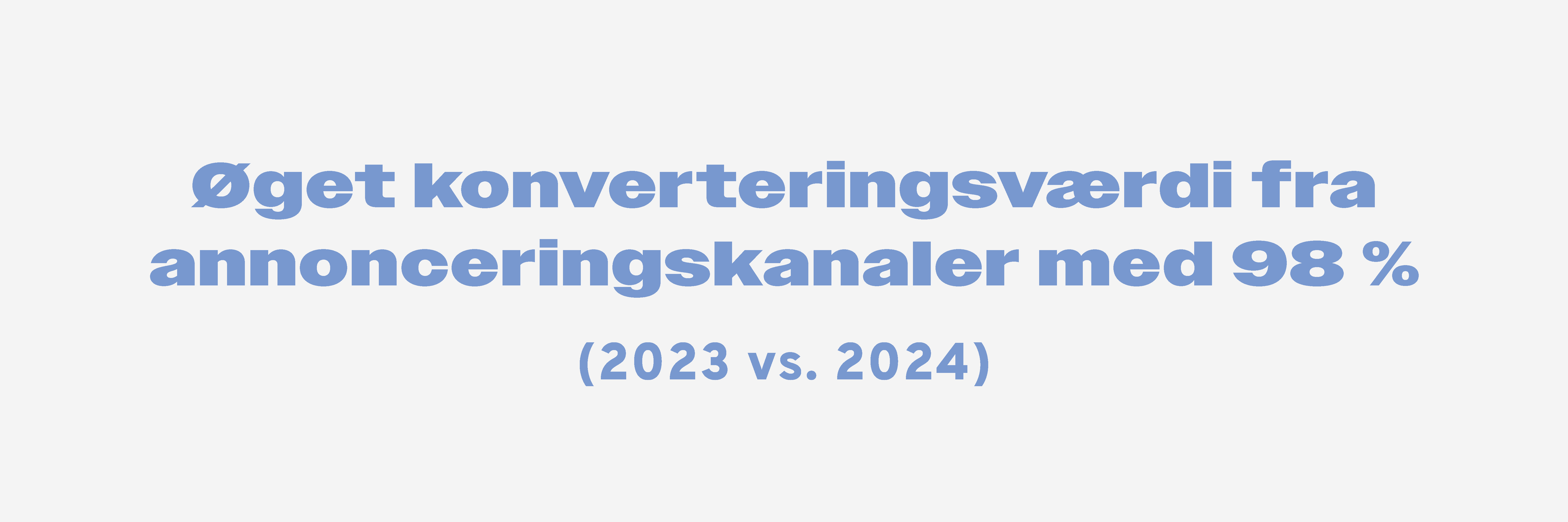 Vi sadlede helt om og kastede os over annonceringen med et legende og eksperimenterende mindset. Det vil sige, at vi testede forskellige koncepter, formater og indhold af, som så kunne generere en masse data, optimeringen skulle baseres på. Derudover har vi hjulpet med følgende: