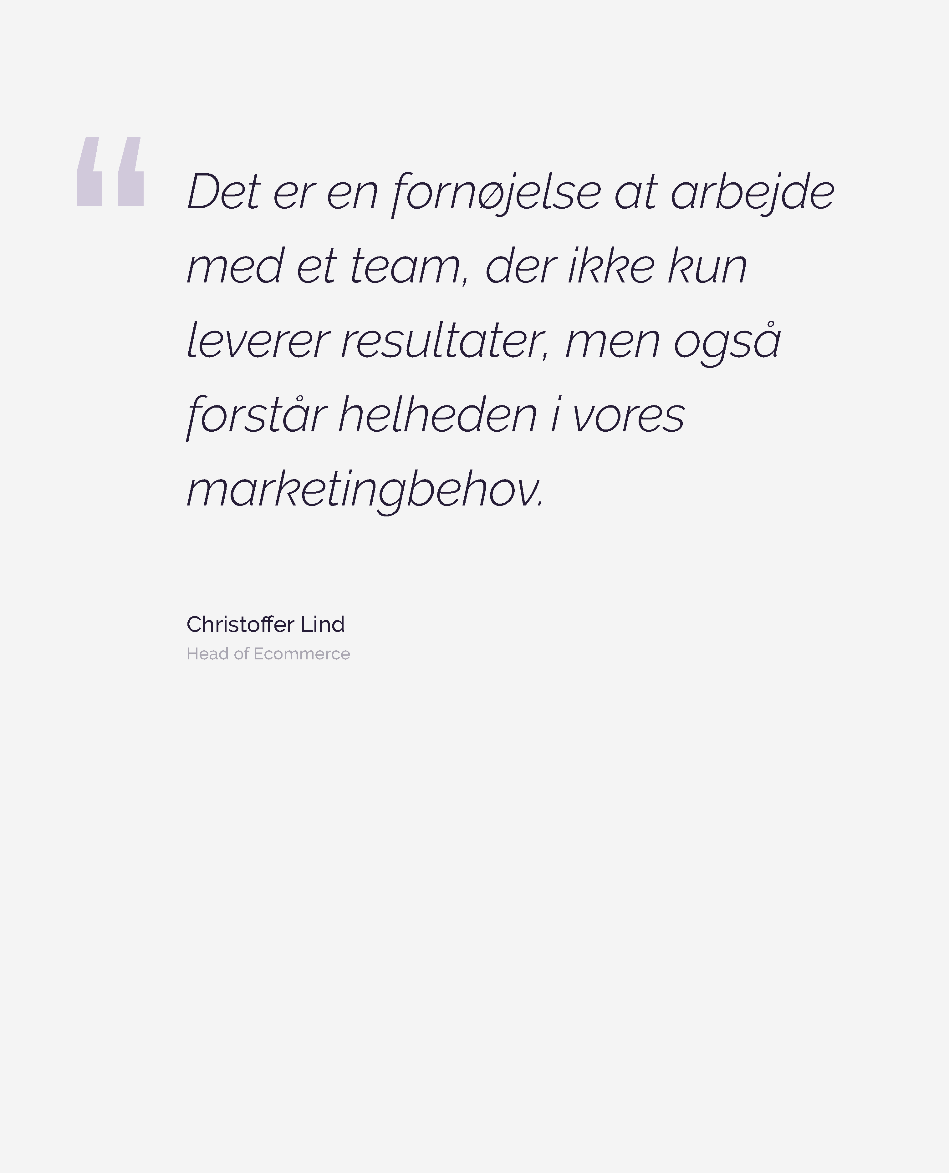 Texta håndterer alt fra annoncer til e-mailmarketing med stor ekspertise, hvilket giver os en komplet 360-graders marketingløsning. Med deres proaktive tilgang og de imponerende resultater, de har skabt for os, er det tydeligt, at de kan deres kram.