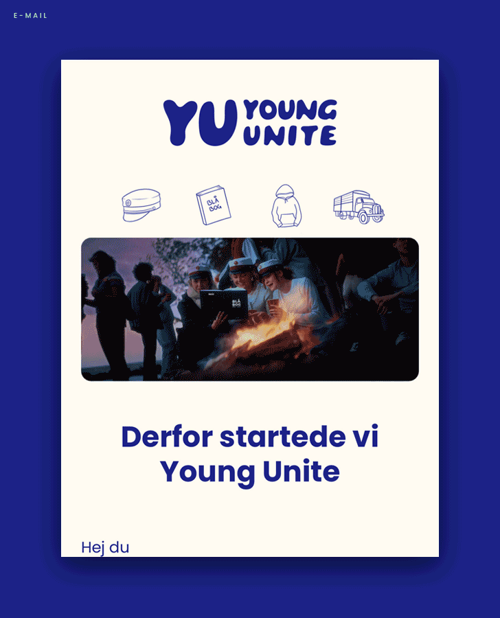 Med udgangspunkt i Young Unites stærke værdier og produkt skabte vi en kernefortælling og en tagline, der fremadrettet skal være udgangspunkt for og en rød tråd i Young Unites kommunikation. Derudover sørger løbende strategisk sparring på forretningen, strategi- og kampagnearbejde samt e-mailmarketing for, at Young Unite er top of mind hos målgruppen.