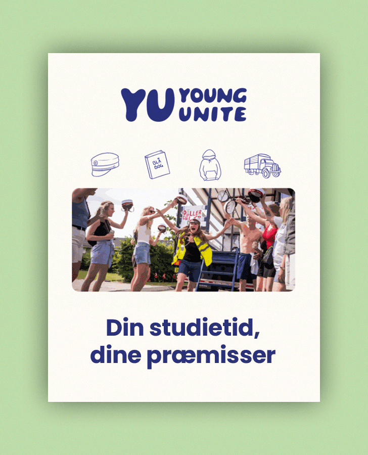 Vores opgave bestod i at få skabt et kommunikativt stærkt udgangspunkt, der slår en streg under Young Unites kerneværdier og derudover løbende at holde Young Unite top of mind hos de studerende.
