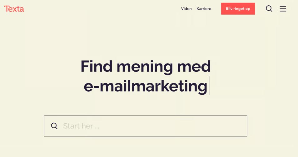Vi har selv implementeret en søgemaskine på forsiden af texta.dk i forbindelse med rebranding: