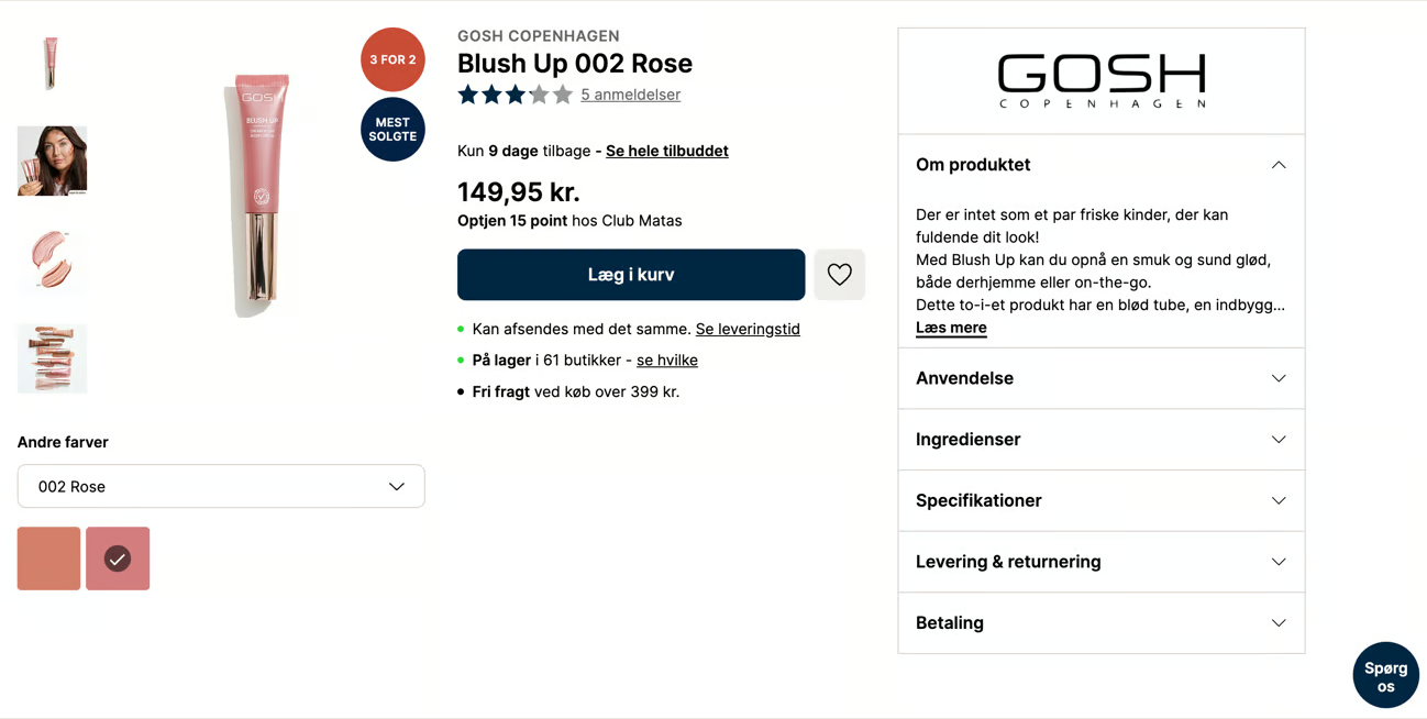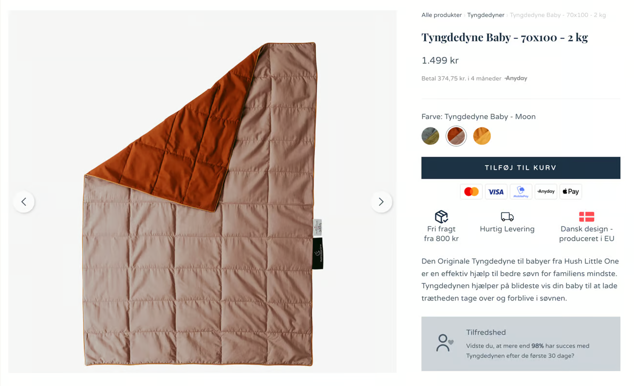 Jeg har også taget nogle eksempler med på shops, der gør det rigtig godt på produktniveau. Måske kan du finde lidt inspiration hos dem til dit eget design, indhold eller value propositions?